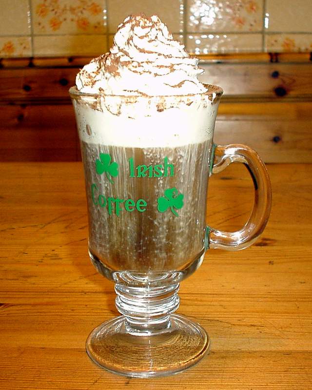 | Neem voor elke gast één (groot) wijnglas of één speciaal Irish koffie glas. | |
